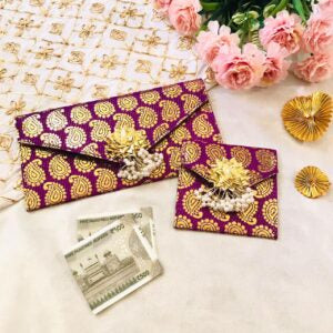 Luxurious brocade money envelopes add elegance and tradition to wedding celebrations, perfect for presenting monetary gifts.