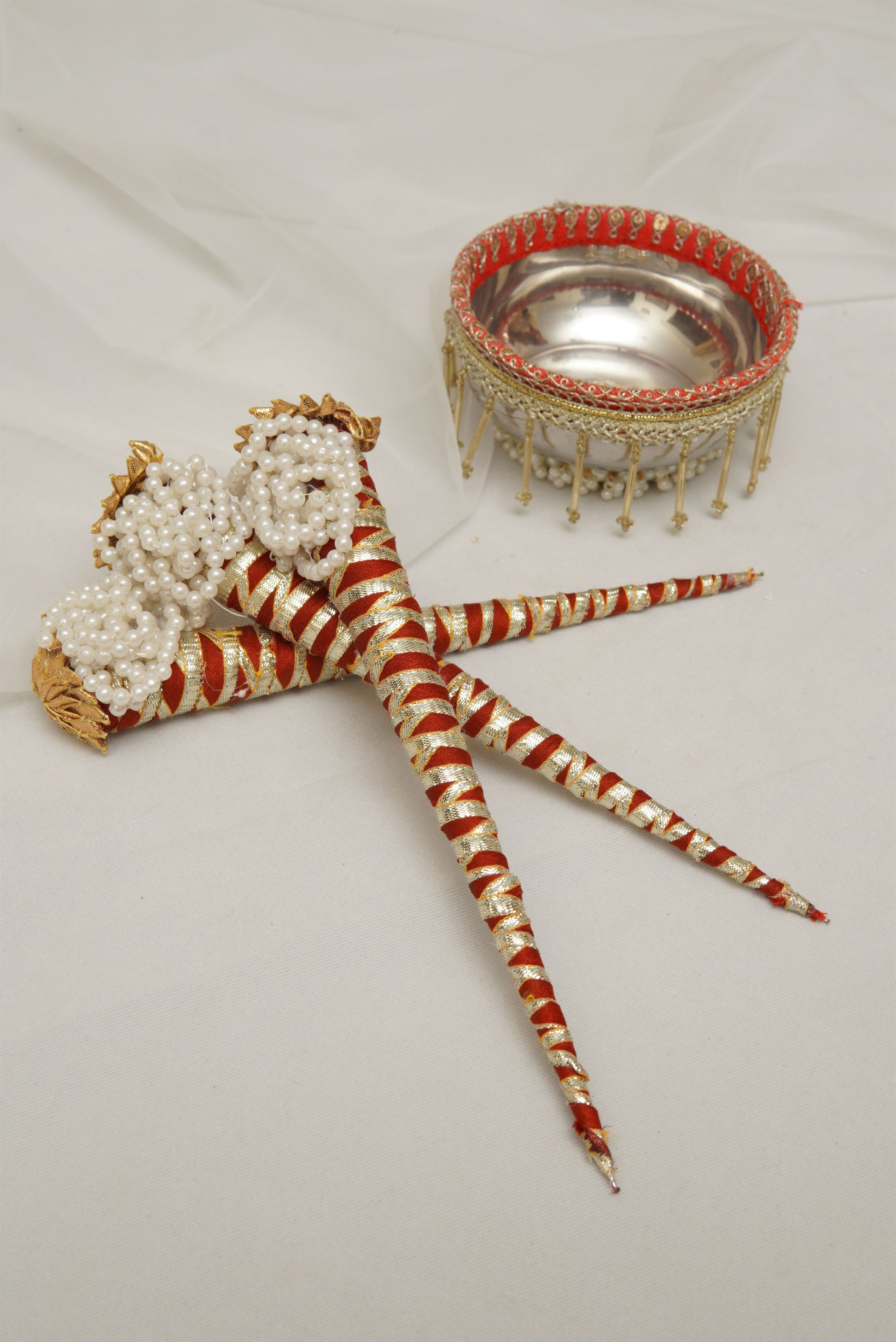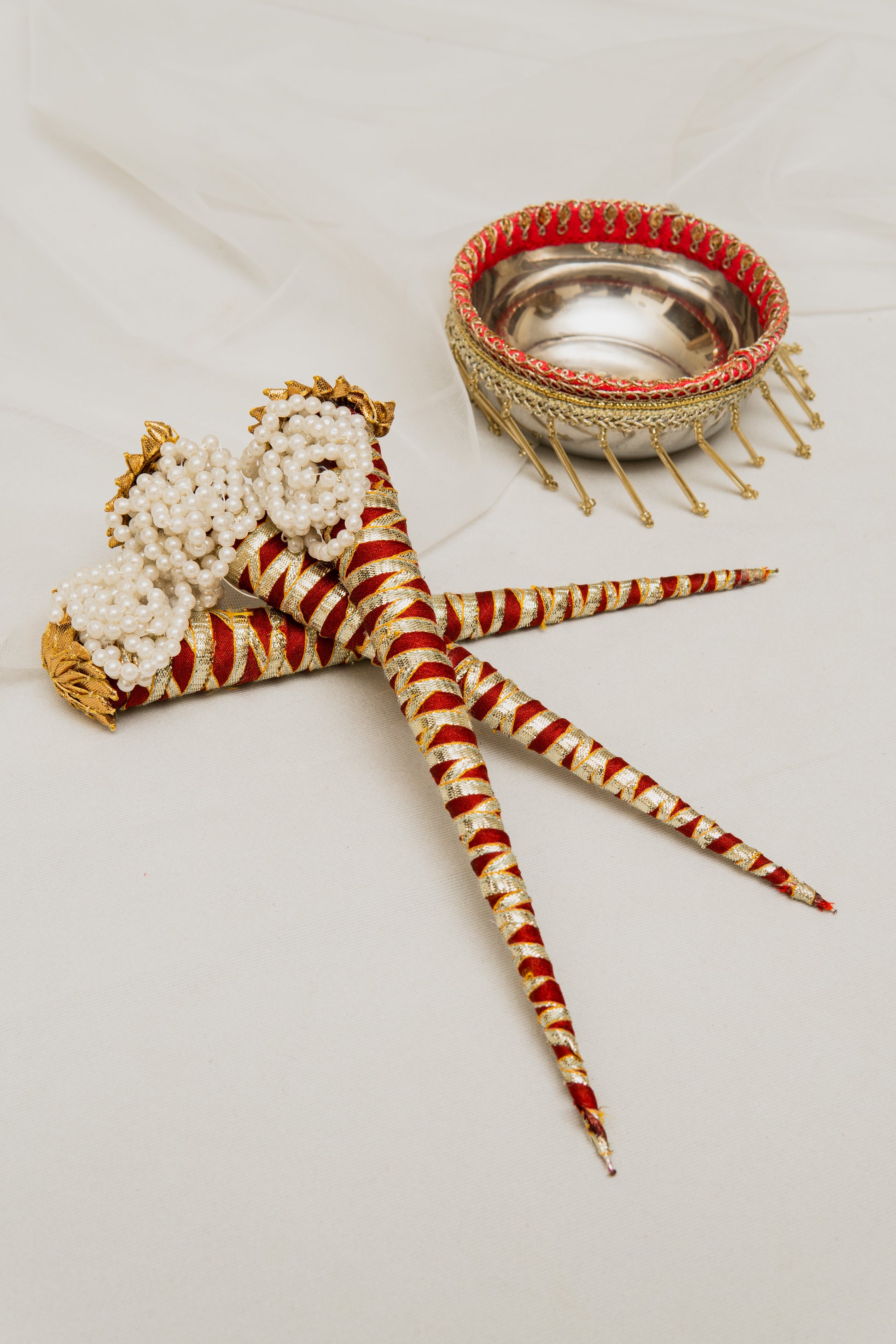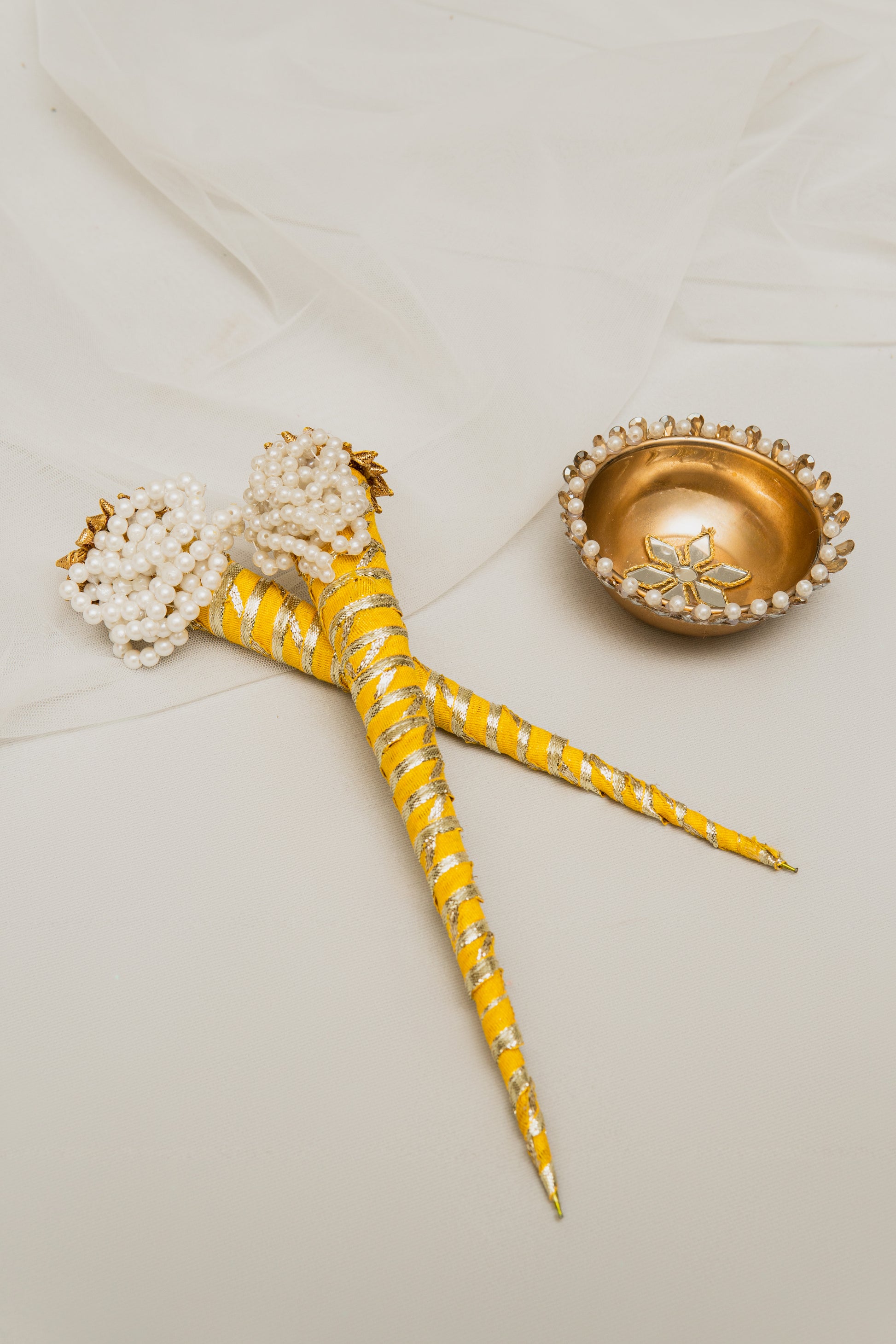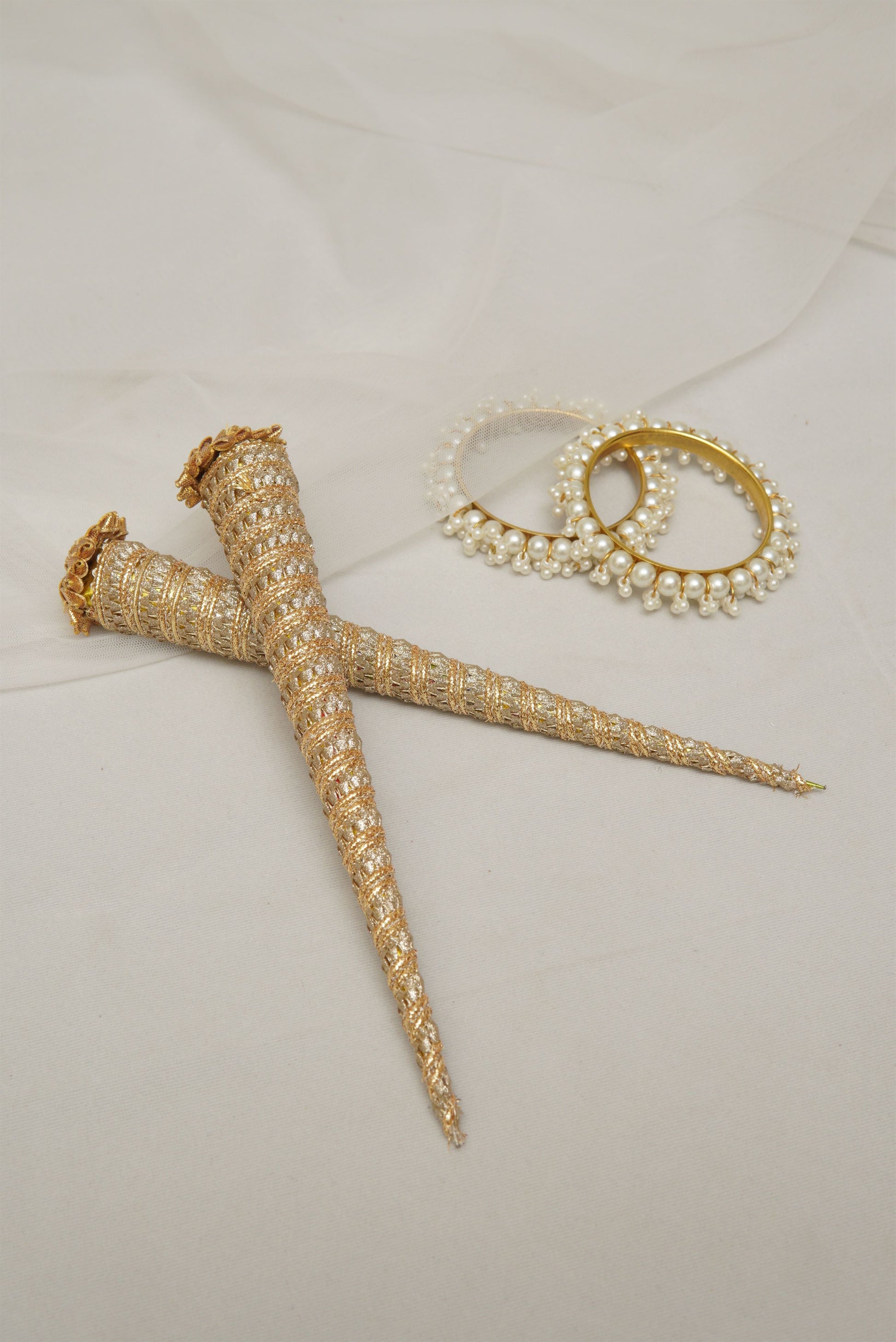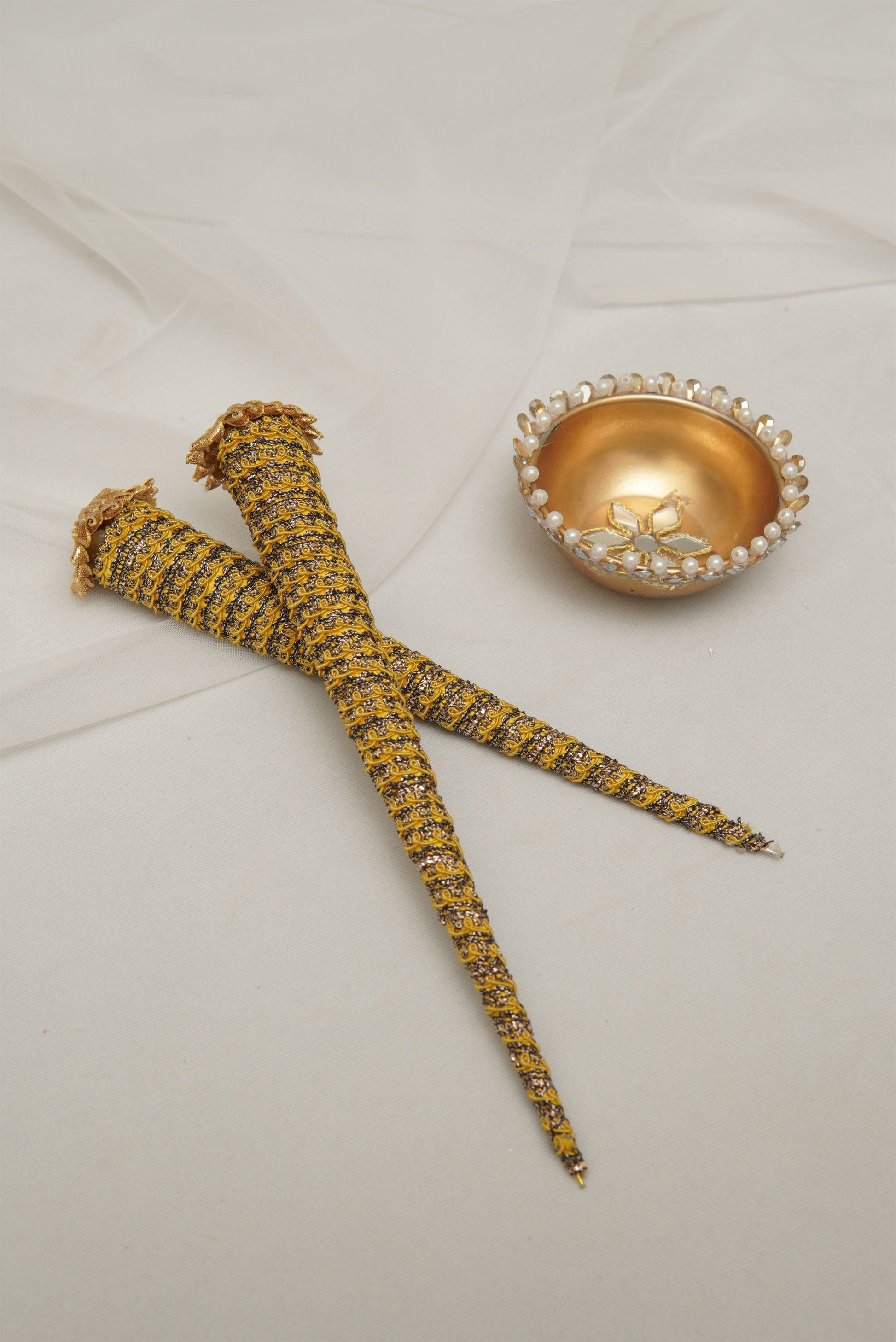 Introducing our exquisite Mehendi cones enveloped in brocade fabric: Elevate your Mehendi ceremony with these beautifully adorned cones. Wrapped in luxurious brocade fabric, each cone exudes elegance and sophistication. Perfect for intricate henna designs, they add a touch of glamour to your festivities, making them a cherished part of your celebration.